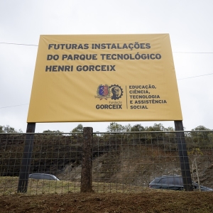 A placa traz a mensagem: “Sem esquecer do seu passado glorioso, sempre idealizando um futuro ainda melhor, a Fundação Gorceix, depositou, no dia 19 de dezembro de 2025, esta Pedra Fundamental, como marco do início dos trabalhos de construção do Parque Tecnológico Henri Gorceix.