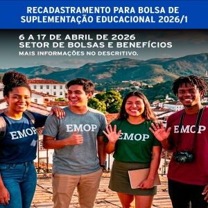 A Fundação Gorceix informa aos alunos da Escola de Minas integrantes do Programa da Bolsa de Suplementação Educacional, que é preciso fazer o Recadastro 2026-1, no período de 06 a 17 de abril de 2026.